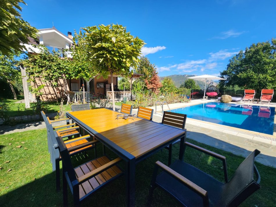 • 🛕SHITET:✨️Vilë Magjike 🪄 e Vetmja në Llojin e Saj e Dal Ndonjëherë në Treg me 5400 m² Truall dhe 300 m² Ndërtim📍( BËRZHITË - IBË ) Me Pishinë BLU KRISTAL 🔵, Fushë Volejbolli, Tenisi, Futbolli, Guesthouse, pa asnjë shtëpi afër, ku qetësi dhe privatësia janë maksimale!