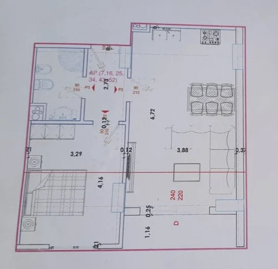 Organizohet në një ambient ndenjie dhe gatimi, një dhomë gjumi, një tualet dhe një ballkon