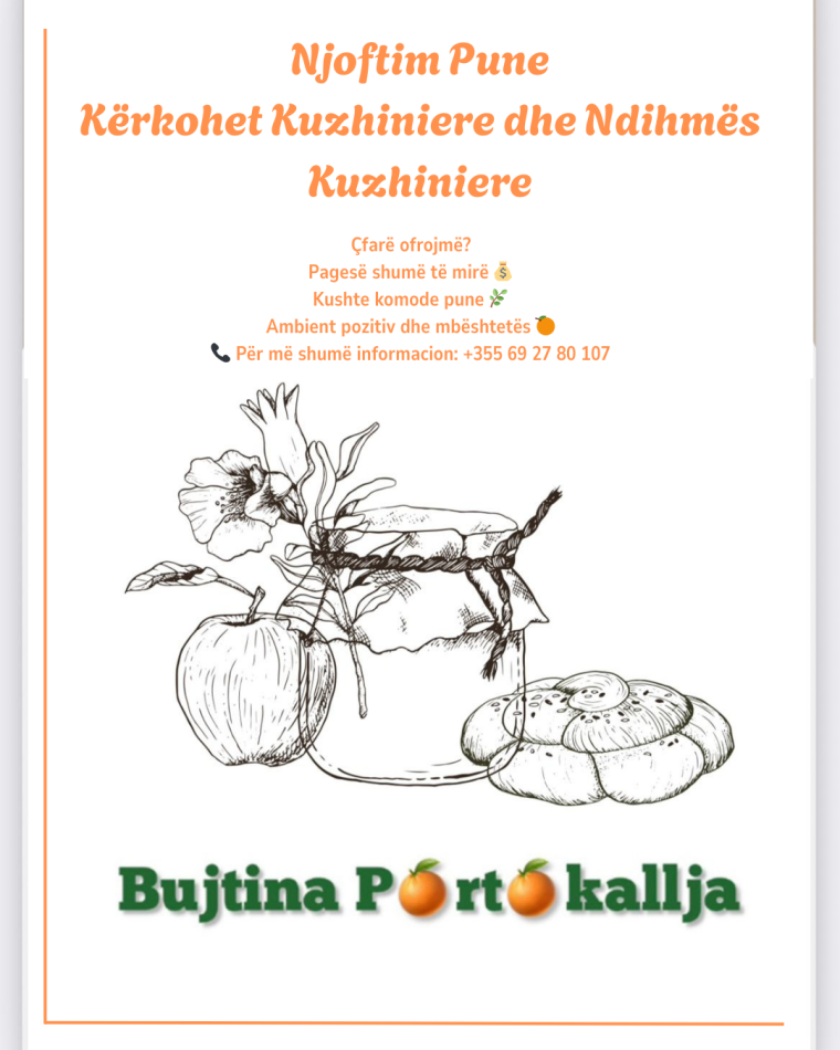 • Bujtina Portokallja ofron vend pune Kuzhiniere per kuzhine tradicionale, Fier