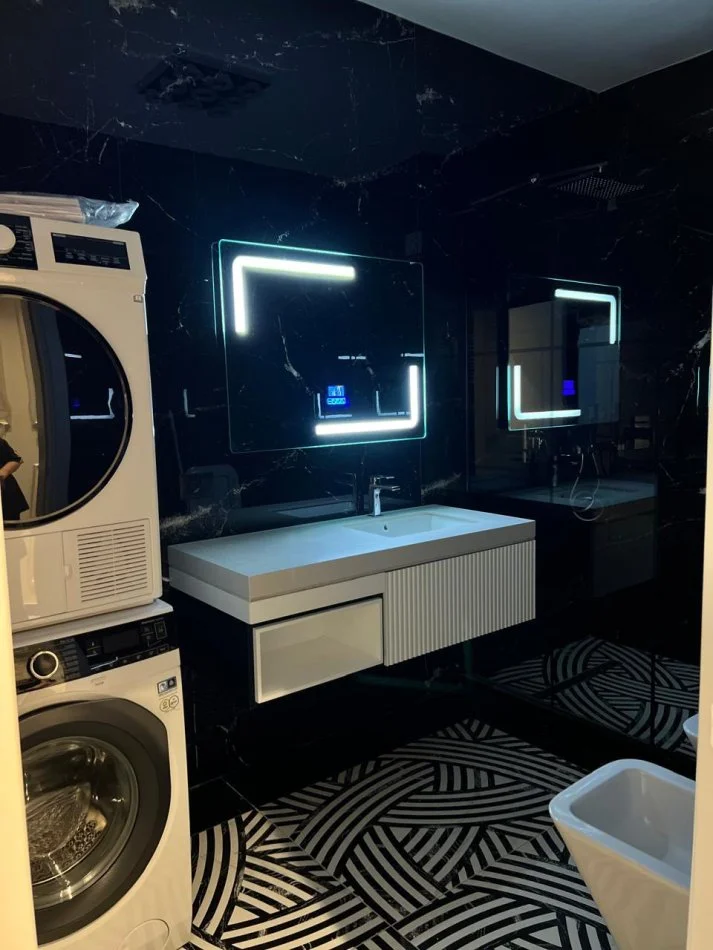 Apartamenti jepet me qira dhe është i tipologjisë 2+1+2 me ballkon, i pozicionuar në zonë plazhi pranë rrugës kryesore. Ofrohet në standard Luxury, i arreduar totalisht me mobilim tërësisht të ri dhe bashkëkohor, duke krijuar një ambient elegant dhe shumë komod për jetesë. Apartamenti ndodhet në një vendndodhje shumë të favorshme, pranë stacionit të urbanit dhe afër të gjitha faciliteteve të nevojshme si markete, shërbime dhe ambiente rekreative, duke e bërë ideal për banim.