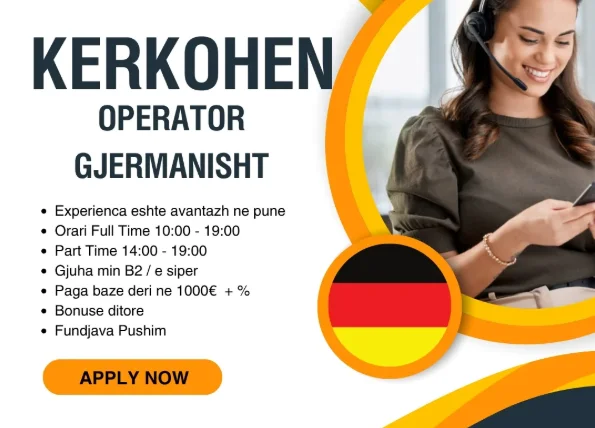 • Durres, Kerkohen Operatore call center ne gjuhen gjermane Baza 800-1200 €