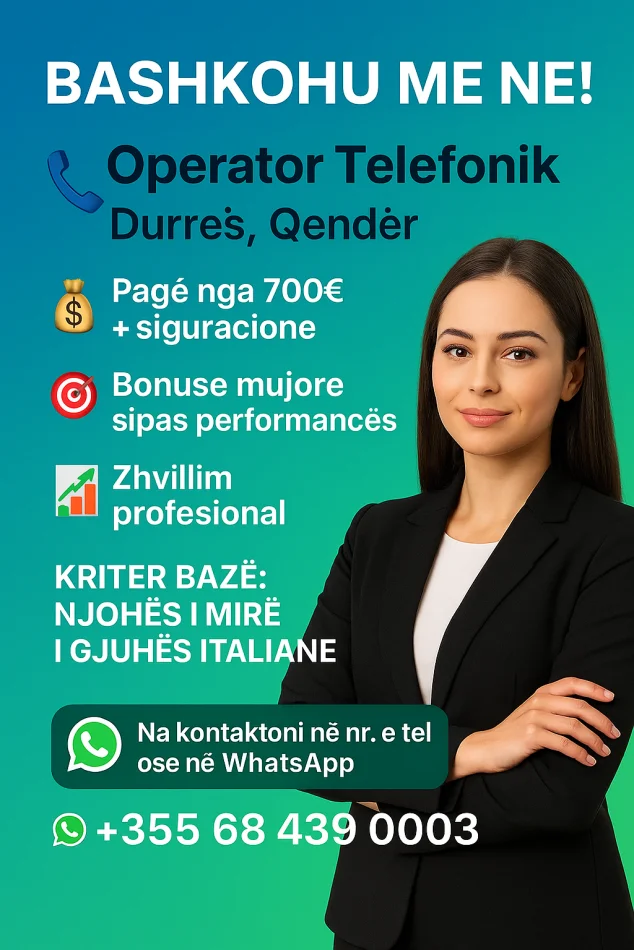 Durres, ofrohet vend pune Callcenter