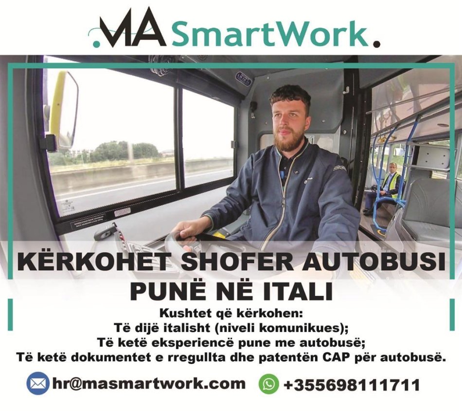 Durres, ofrohet vend pune KËRKOHET SHOFER AUTOBUSI – PUNË NË ITALI