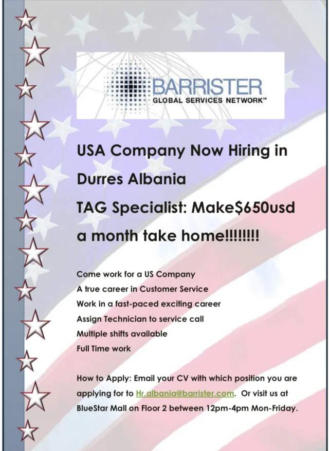 applying for to Hr.albania@barrister.com. Or visit us at