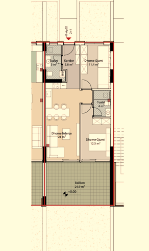 Durres, shes apartament 2+1+Ballkon Kati 0, 112 m² 259.000 € (Porto Lalzi)