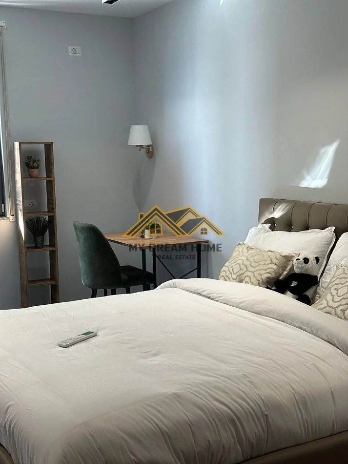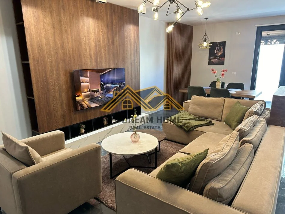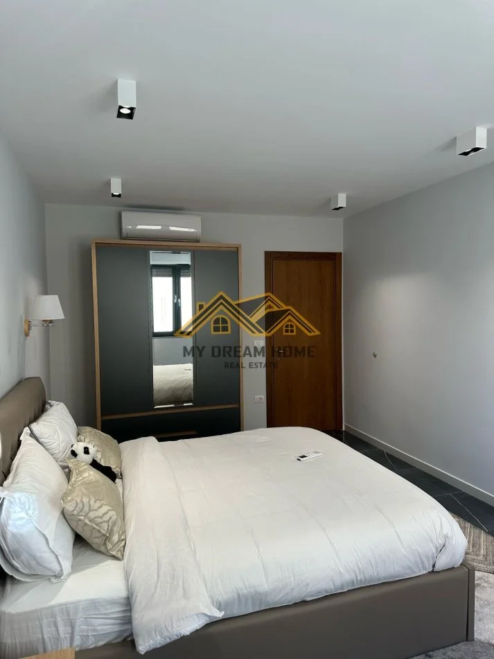 Apartament ndodhet te nje pallate te ri te pajisur me ashensor. Ka nje siperfaqe totale 132 m2 dhe siperfaqe te brendshme 125 m2. Organizohet ne nje soxhorno te madhe dhe guzhin 2dhoma gjumi,2 tualete dhe 2 ballkone I cili ofron nje pamje fantastike. Apartamenti ndodhet ne nje pallat te ri me 2 ashensor me punime mjaft cilesore. Apartamenti eshte i sapomobiluar.