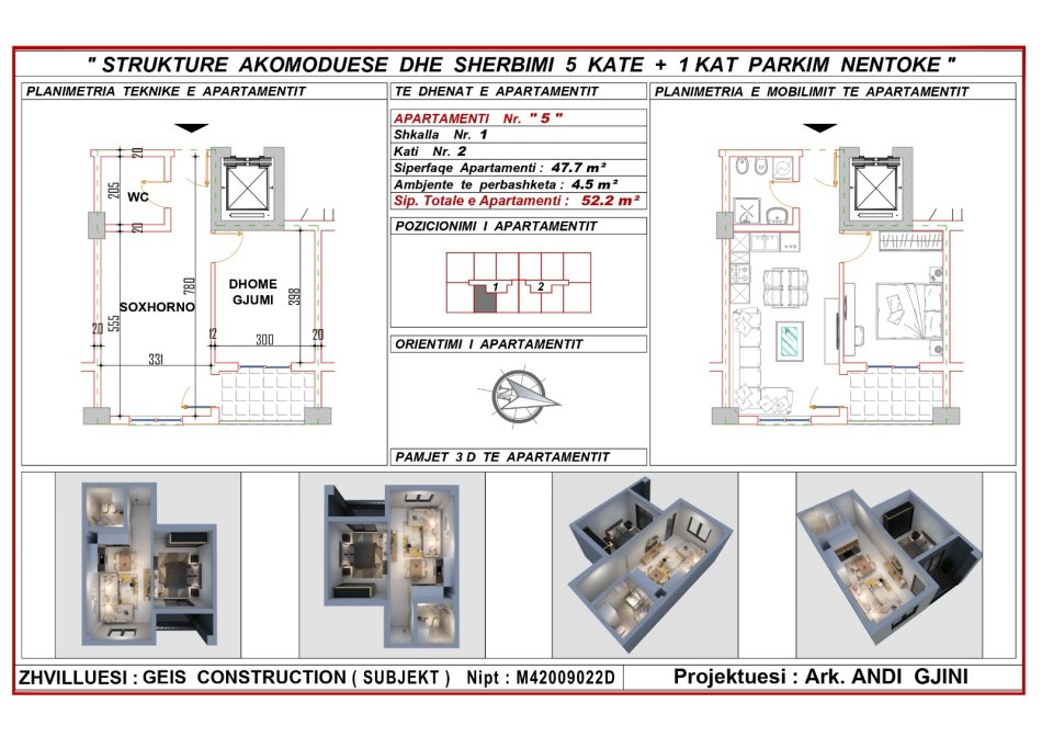 Ofrohet për shitje një apartament me tipologji 1+1, me sipërfaqe totale 52.2 m², pjesë e një rezidence moderne që aktualisht ndodhet në fazë ndërtimi.