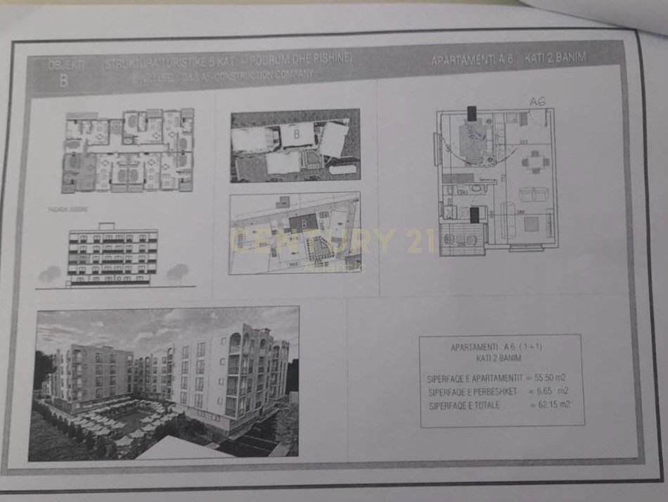• Sipërfaqja bruto: 62.15 m²