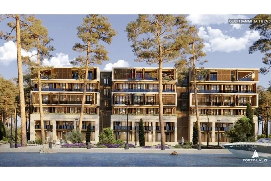 Apartamenti eshte ne katin 0 te nje prej godinave ne ndertim me pamje nga kanali