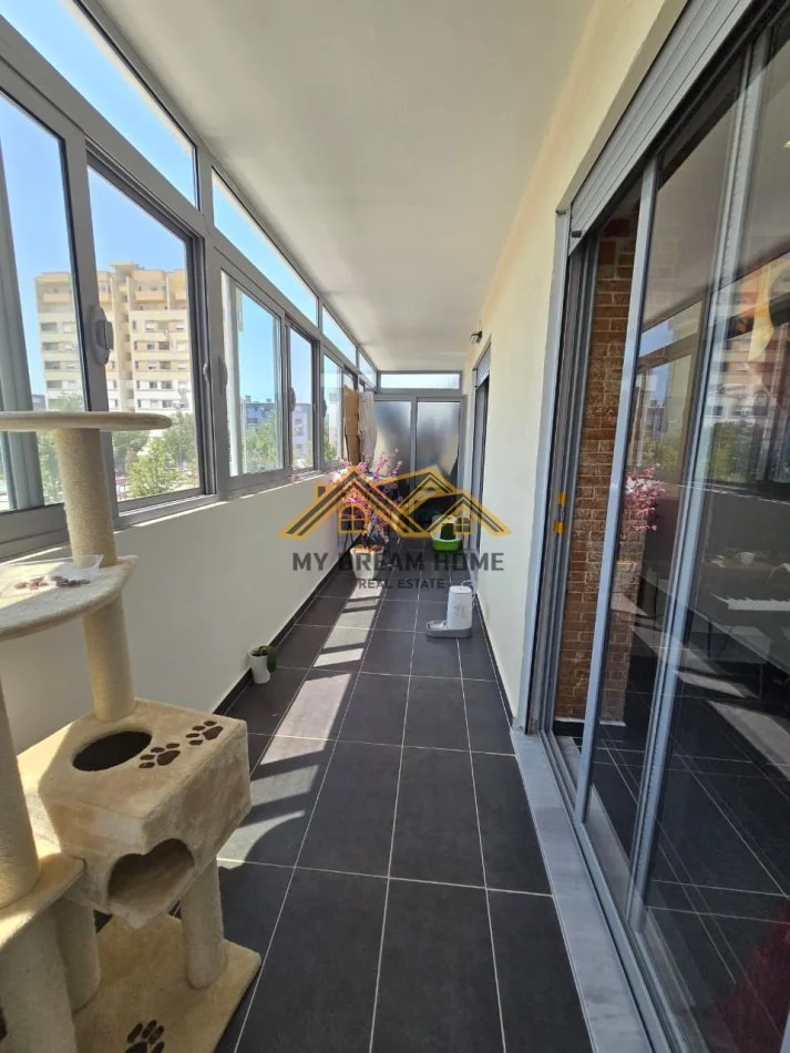 Apartamenti ndodhet ne nje pallat te ri me nje organizim perfekt dhe me hapesira te mireshfrytezuara.Orientimi eshte Jug duke siguruar ndricim natyral per pjesen me te madhe te dites. Po ashtu investimi dhe mobilimi eshte relativisht i ri dhe cilesor.