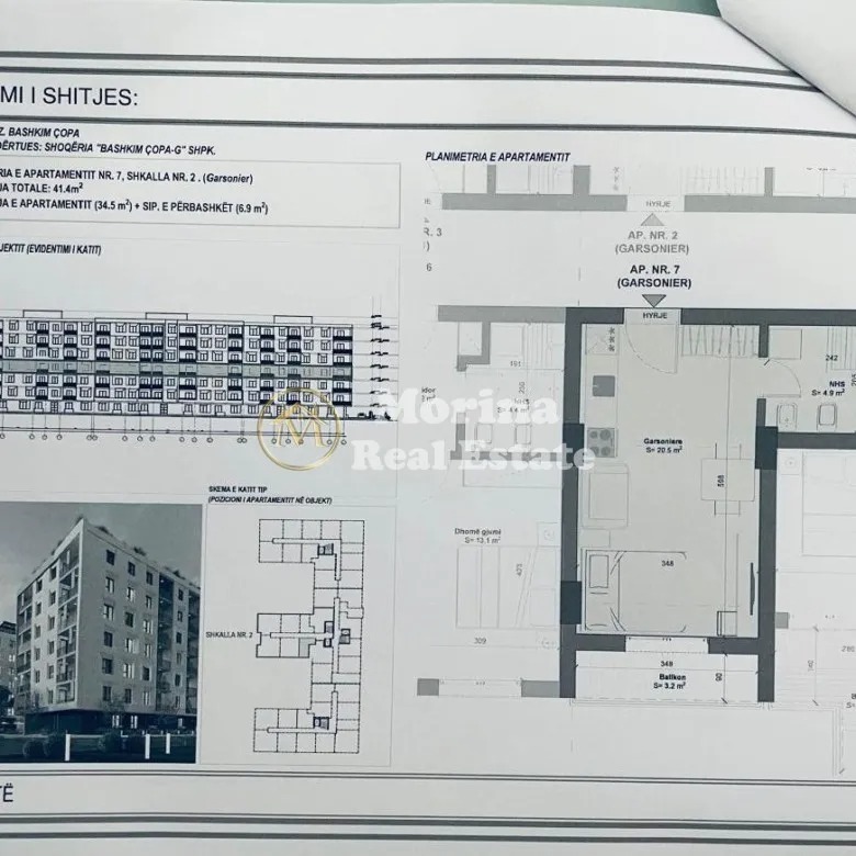 Shitet Garsoniere , me siperfaqe totale prej 41.4 m² dhe gjendet në katin e 6 të një pallatii Ri . Garsonieria ka organizim shumë te mire ofrohet bosh e pa mobiluar .