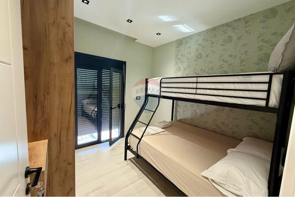 Vila shitet totalisht e mobiluar me nje stil modern dhe te rafinuar. Aktualisht shfrytezohet si prone per Airbnb per shak te vendndodhjes se saj strategjike, vetem pak minuta nga bregdeti, duke garantuar te ardhura te rregullta dhe nje rritje te vleres ne kohe.