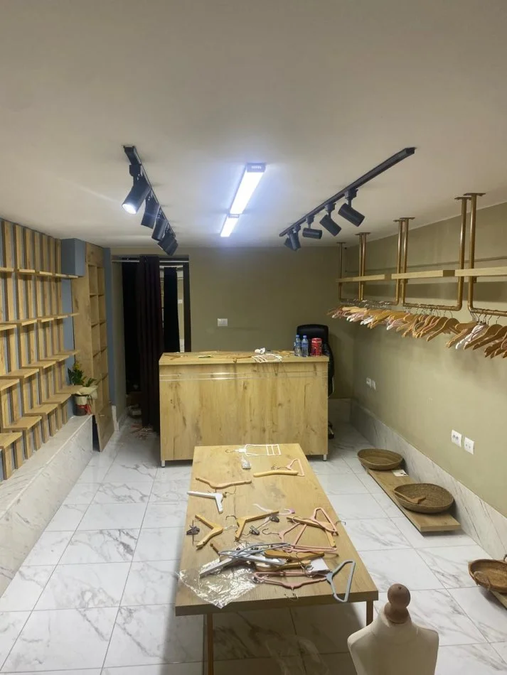 Dyqani eshte 32m2 , dyqani eshte ne buze te rruges brigada 8 perballe grandkafe de pari. Ka punuar per 3 vite si butik.