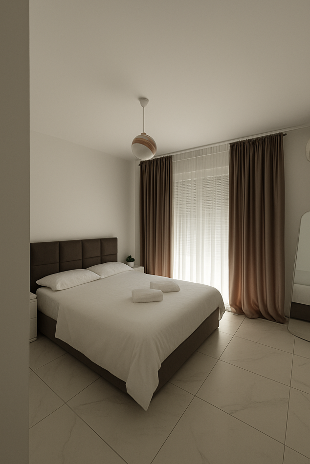 Enjoy a comfortable stay in this stylish apartment in Tirana. It features two bedrooms (one with a queen bed, one with two singles), a equipped kitchen, a cozy living room, and a bathroom. The highlight is the spacious balcony with beautiful city and mountain views. Conveniently located near restaurants, cafes, and attractions, it’s perfect for both short and long stays.