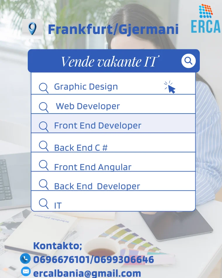 • Gjermani, ofrohen vende pune Graphic Design, Web Developer, Front End Developer, Back End, C #, Front End Angular, Back End Developer, IT