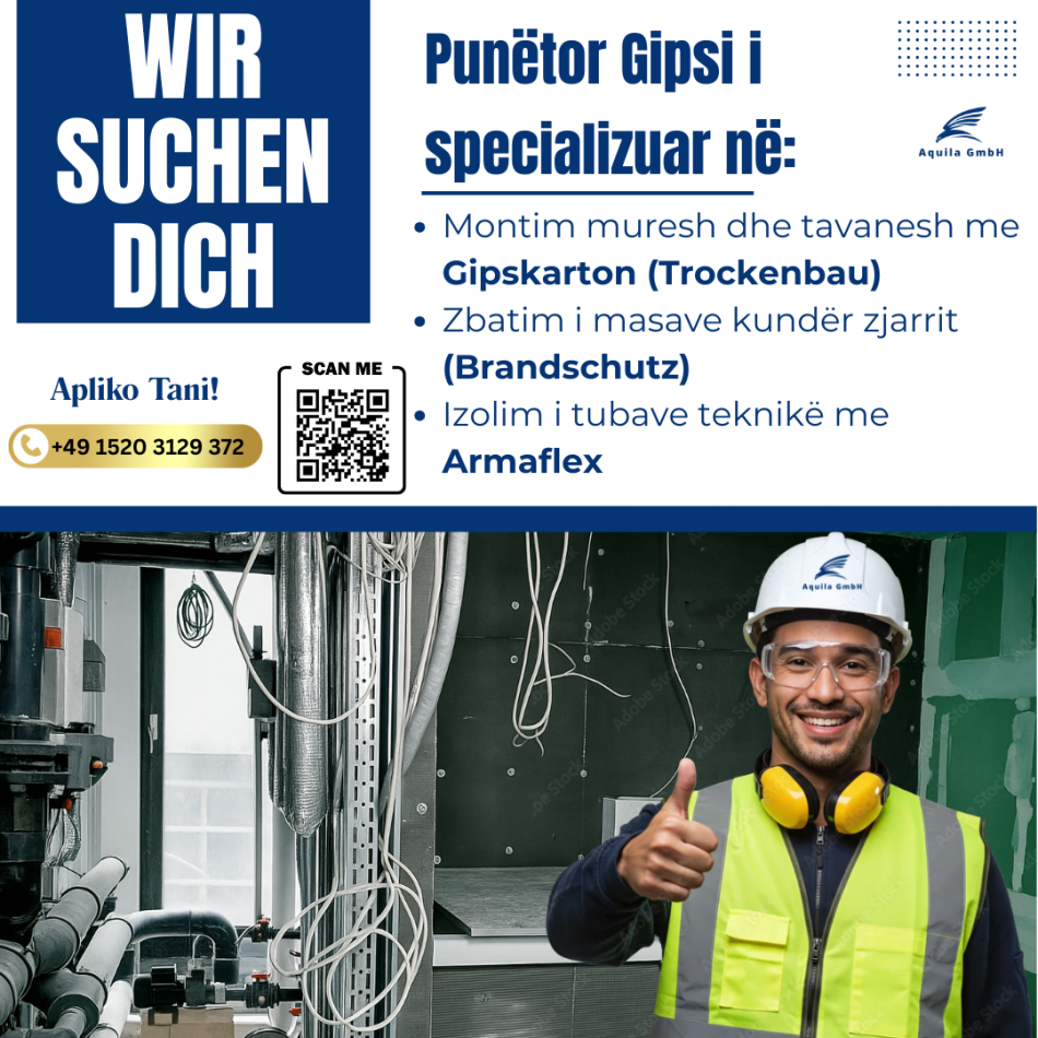 Kërkojmë Punëtor Gipsi të Specializuar (Trockenbaumonteur)!