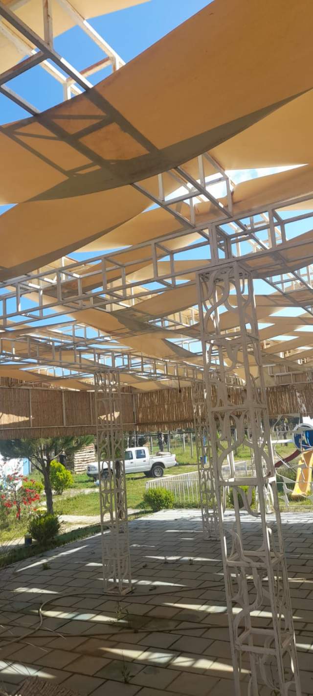 Shitet tende (vetem mushamaja) per lokale, beach bare etj. Siperfaqja e tendes 180m2. Copat jane te gjera 50 cm dhe te gjata 12m.