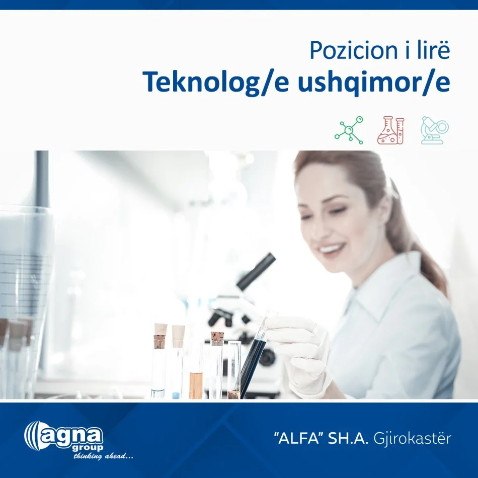 “ALFA” Sh.a. kërkon të punësojë në Fabrikën e Glinës në Gjirokastër kandidatë me aftësi të shkëlqyera në proceset e analizave fiziko-kimike, me aftësi shumë të mira komunikimi dhe bashkëpunimi, të gatshëm për të mësuar gjëra të reja dhe me ambicie për tu rritur profesionalisht, në pozicionin: