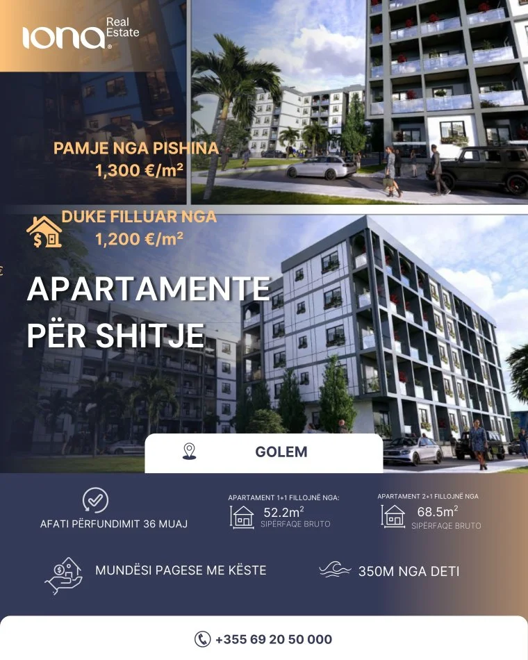 Projekti më i ri dhe modern në Golem, vetëm 350 metra larg detit, ofron komoditet maksimal dhe ambiente relaksuese për të gjithë familjen.
