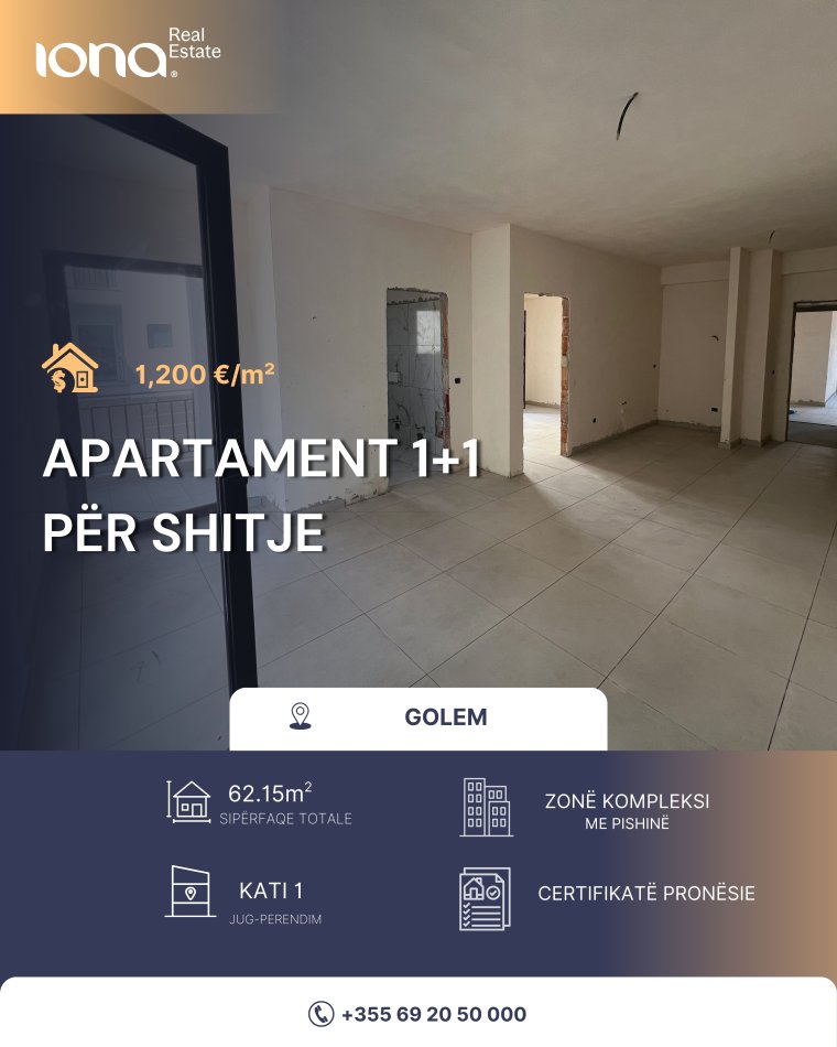 Apartament 1+1 në shitje – Golem