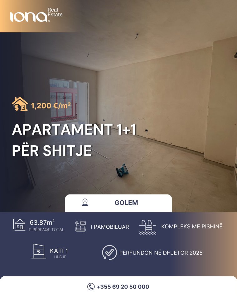 🏡 Apartament 1+1 në shitje – Golem