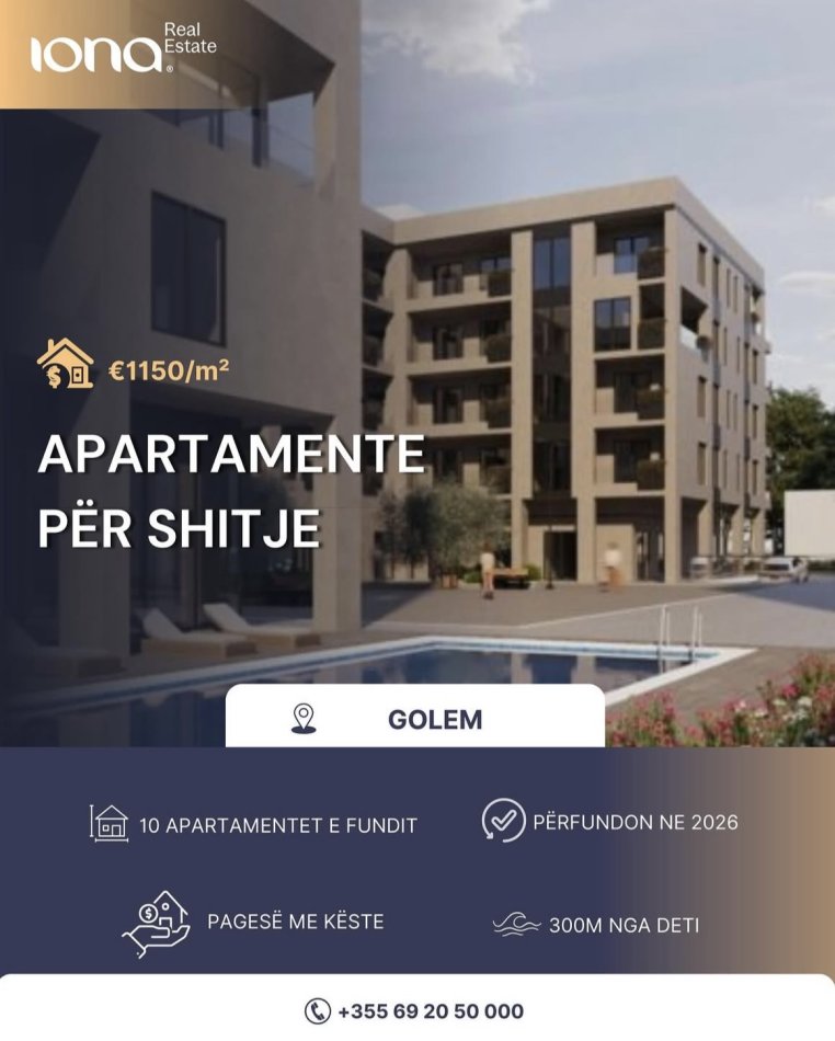 Në një kompleks modern dhe të mirëorganizuar, ofrohen apartamente të tipologjive të ndryshme, me kushte fleksibël pagese dhe afërsi me detin.