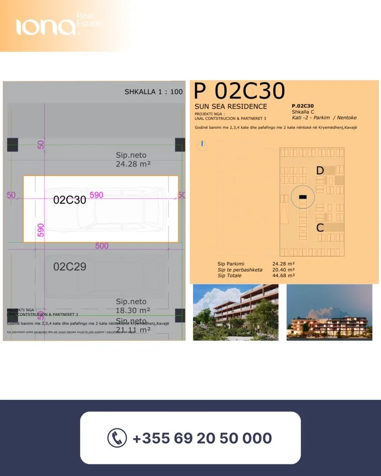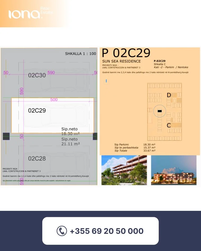 • Çmimi: 22 500 € / garazh Kompleks me pishinë Vendndodhje: Pranë kompleksit Miami 2 Distanca nga deti: 350 m Përfundon: Ne fund te vitit 2026