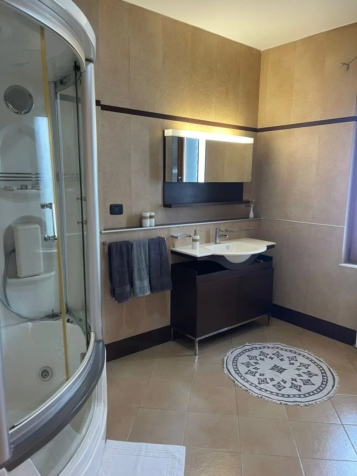 4 dhoma gjumi te bollshme, 2 tualete, ballkone, 1 verande te madhe, 3 poste parkimi, oborr me peme dhe lule te ndryshme.