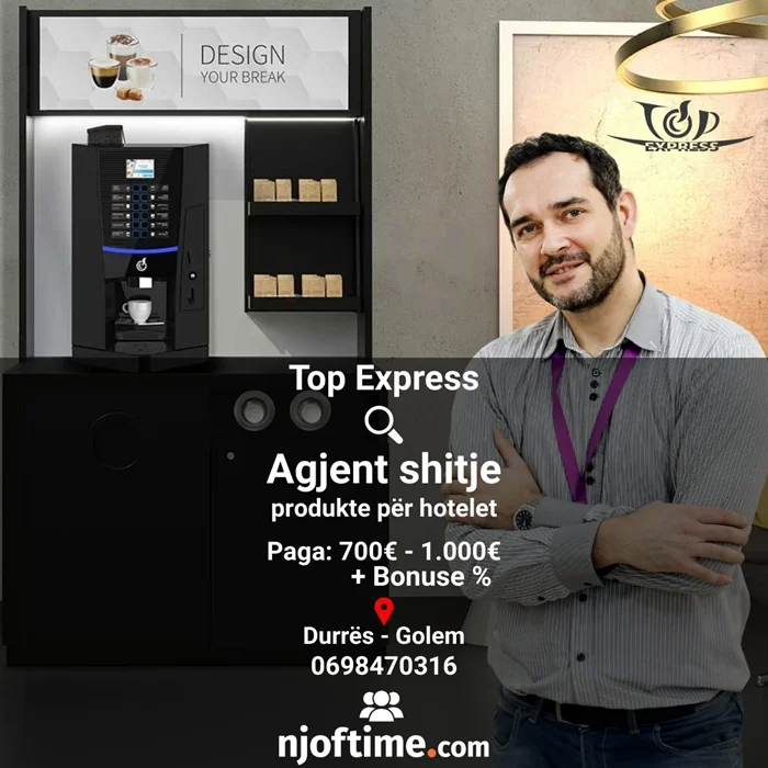 Kërkojmë Agjent shitje produktesh për hotelet, zona Durrës - Golem (Baza 700€ - 1000€ + Bonus %)