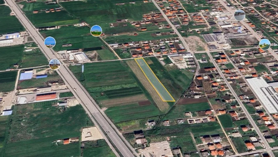 Toke e ndodhur buze rruge ,ne nje zone te populluar me vila private.Rruga eshte e lidhur me shetitoren “Princat Topia” e cila eshte vazhdim i drejte i rruges qe te con ne qender.Opsion shume i mire ,ne nje zone te qete .