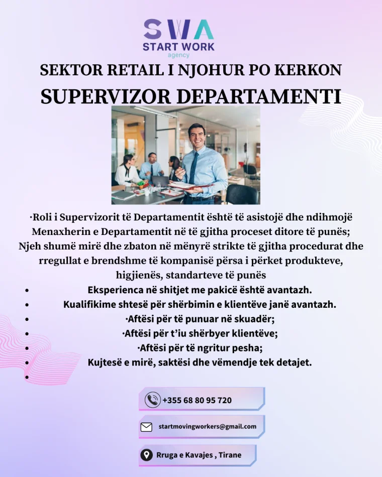 • kerkohet Supervizor I Departamentit NE SEKTORIN RETAIL