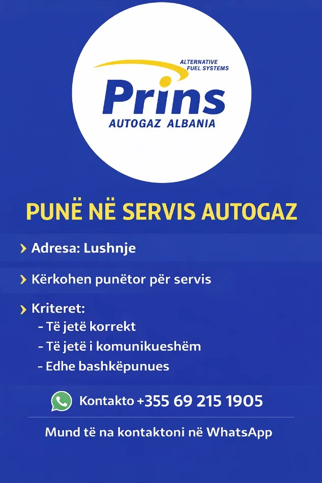 13.03.2026, 09:57 Benard001 Lushnje, ofrohet vend pune Servis Lushnje Tipi me orar te plote Fusha | Profili i punes Auto-servis-specialist Ofrohen vende pune ne servis AutoGazi Cel. : +355 69 215 1905 WhatsApp