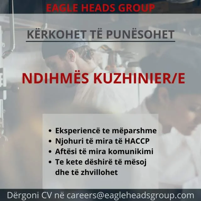 Eagle Heads Group është duke kërkuar të punësojë: Ndihmës Kuzhinier/e