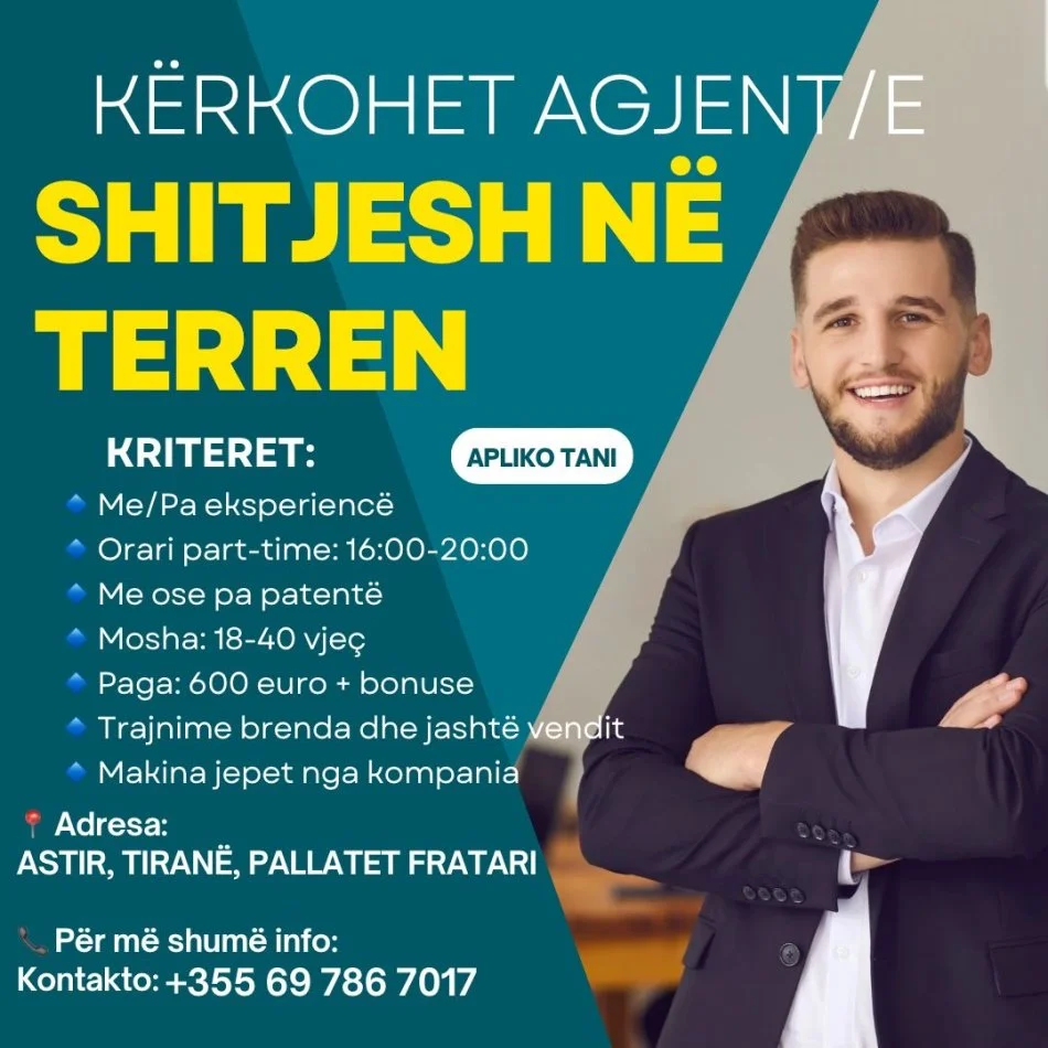• Ofrohet vend pune me orar te plote | part time mbasdite agjent shitjesh
