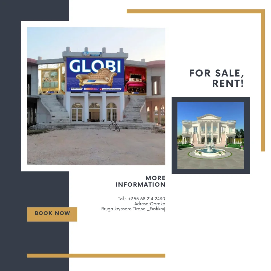 Shitet, Jepet me Qira objekt me potencial të lartë biznesi, i pozicionuar direkt në rrugën kryesore Tiranë – Fushë-Krujë, në zonën e Qerekës.