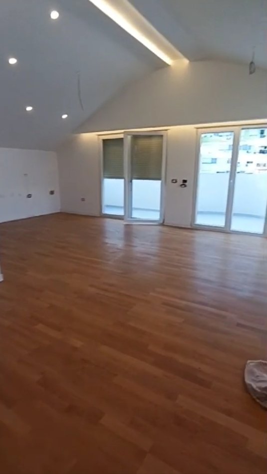 Pallat i ri. Apartament vendoset kati 4, i fundit, ashensori shkon deri ne kat te 3. Eshte Apartament i ri I pabanuar me pare. Disponon 1 post parkimi perfshire ne cmim.