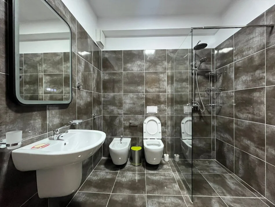 Jepet me qira apartament modern në zemër të Tiranës, në rrugën “Myslym Shyri”. Ndodhet në një pallat të ri, i përfunduar në vitin 2024, me standarde të larta ndërtimi.