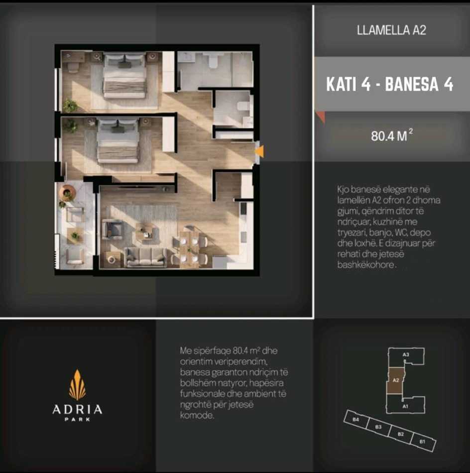 Shitet banesa 80.4m² në kompleksin Adria Park në Prizren.