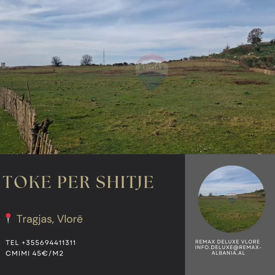 Ofrohet për shitje një tokë bujqësore me sipërfaqe totale 14,000 m², e vendosur në një nga zonat me potencial në rritje të Tragjasit, Vlorë, buzë rrugës kryesore dhe me akses shumë të lehtë.