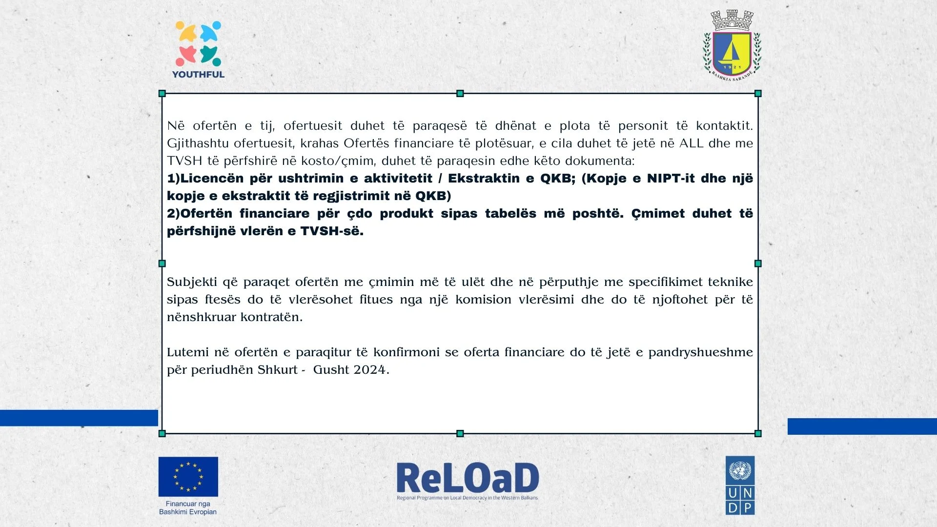 Për më shumë detaje rreth Ftesës për Ofertë jeni të lutur të aksesoni dokumentacionin bashkëngjitur.
