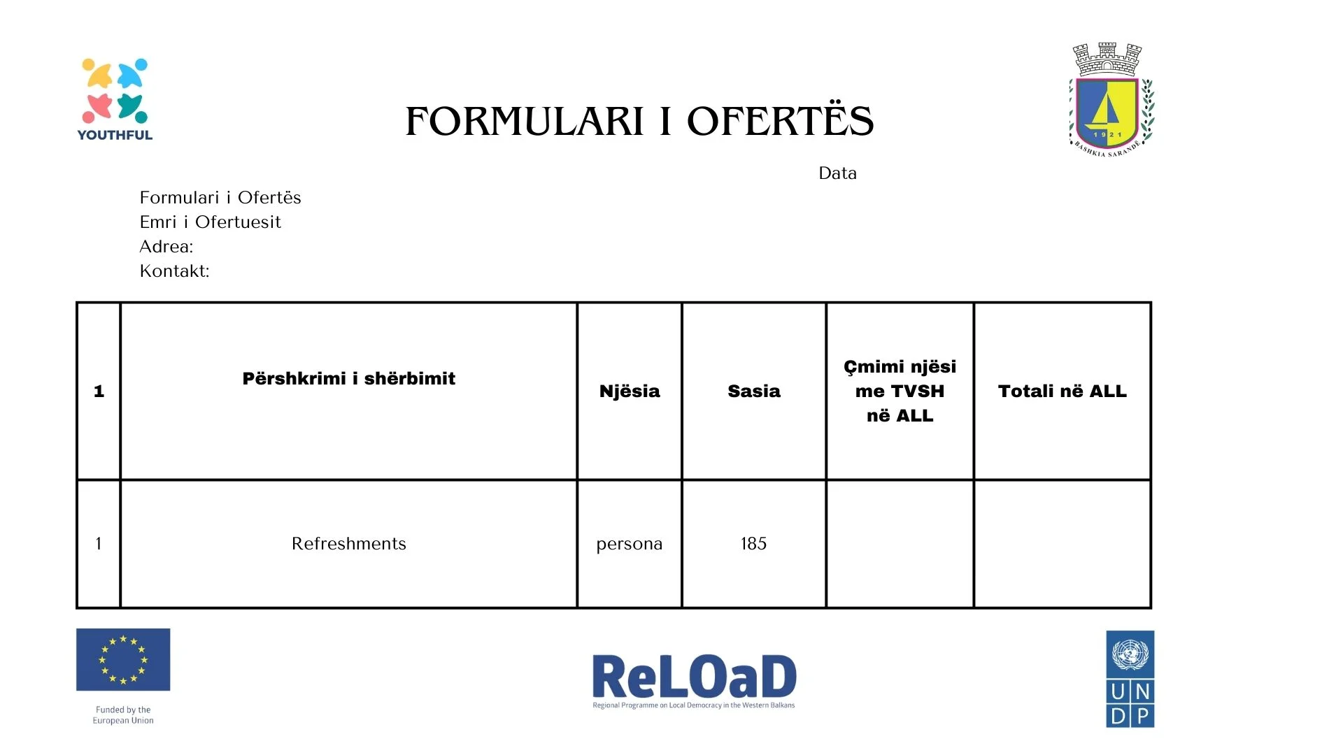 • RISHPALLJE Ftese per oferte - Refreshment – Bashkia Sarandë
