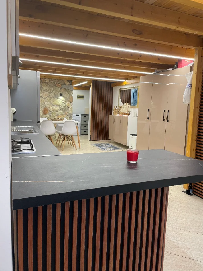 * Ambjenti ne katin e siperm 30 m e organizuar si dhome gjumi komode. Ambjent i hapur me shkalle te brendshme dhe ndricim natyral.