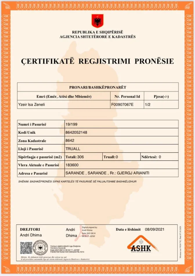 Shitet toke "truall" me certifikate pronesie, 306 m2 ,ne qytetin e Sarandes.