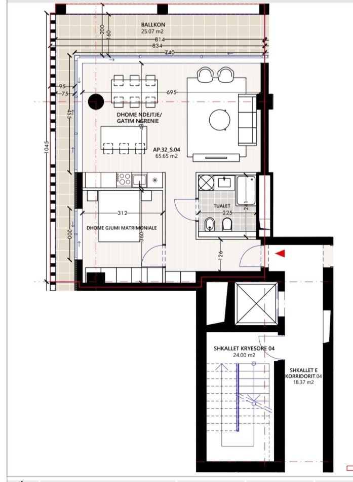 Sip. Ndertimi: 90.74m² (25.07m² ballkon)