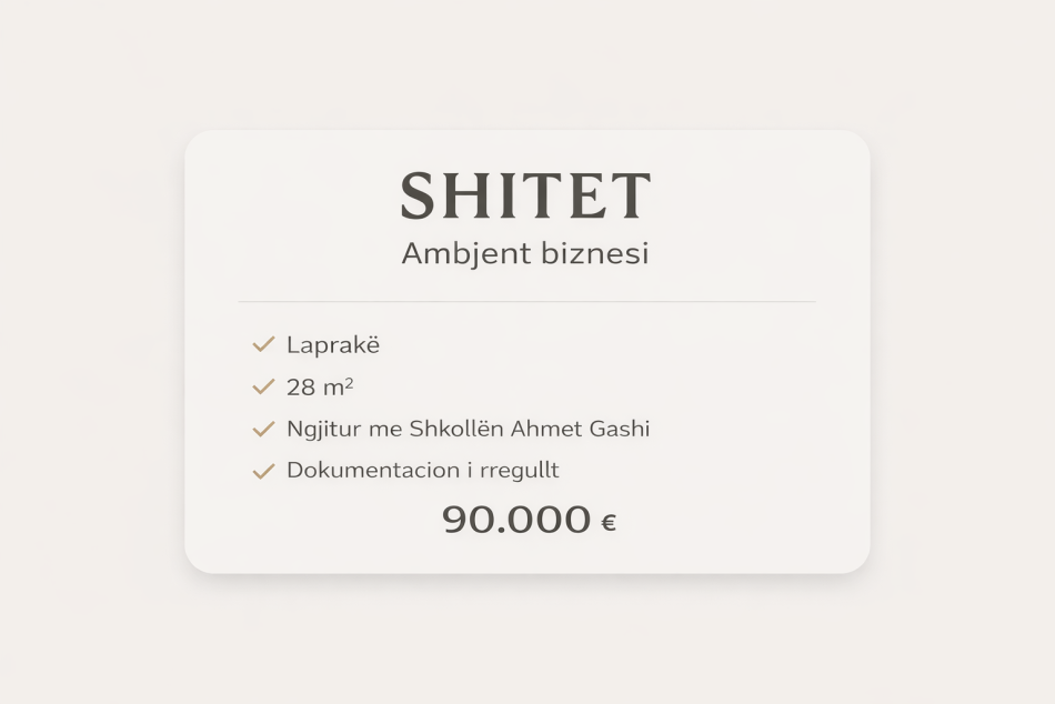 Shitet ambjent biznesi ne Laprake nga Pronari, pa-komision Kati 0, 28 m² 90.000 € (Laprake)