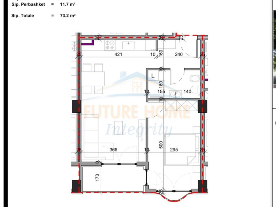 • Sipërfaqja bruto: 73.2 m2.