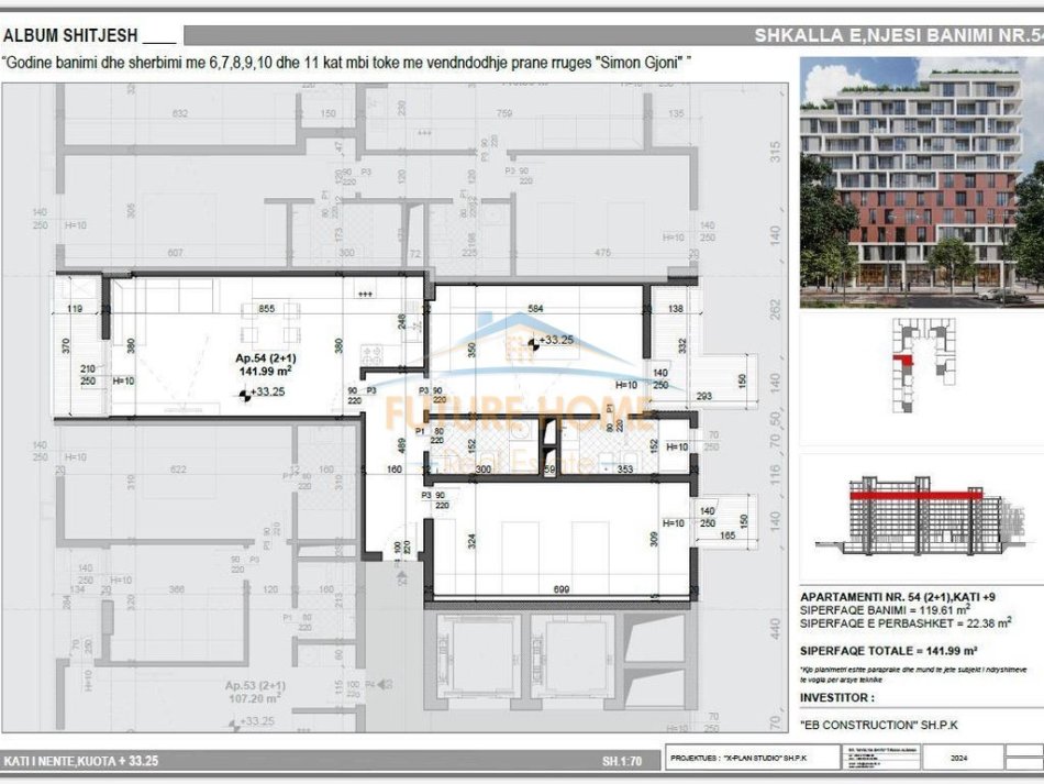 • Sipërfaqja e apartamentit (bruto) : 141.99 m2