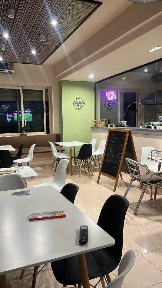 🍽 Tavolina brenda: 8 | Tavolina jashtë: 3 Ka funksionuar si mensë + shërbim kafe/pije Ambient praktik dhe i përshtatshëm për koncepte të ndryshme biznesi.