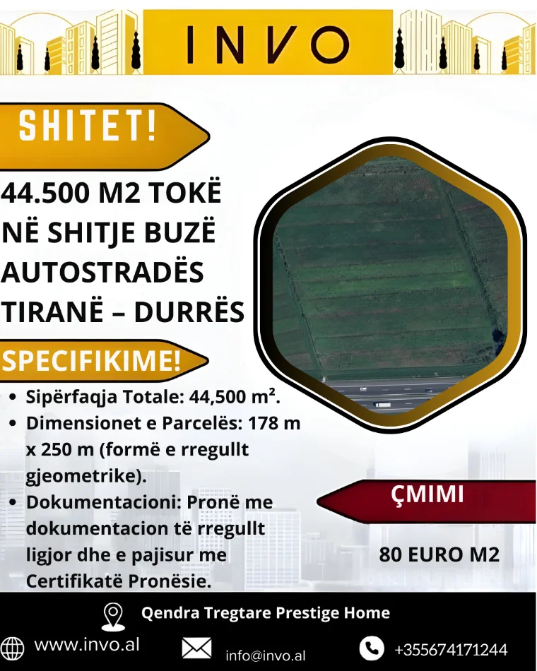 🏗️ 44.500 M2 Tokë buzë Autostradës Tiranë – Durrës