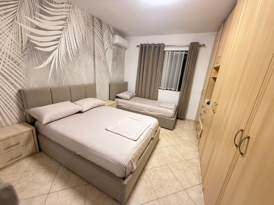 Tek Brryli, bulevardi Bajram Curri, prane Bar Votres, jepet me qera apartament 1+1, me siperfaqe 60 m2, kati i pare banim, pallat i ri me ashensor, tualet, kondicioner, e mobiluar.D.F